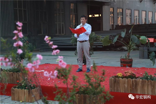 2018年8月8日晚18点00分,在公司钢构厂区华宏轩举行了《华宏钢构九周年庆典》,公司董事长朱宏志、总经理朱宏勇、财务总监刘肖等公司领导和各界嘉宾参加了会议。以下为大会现场实录。