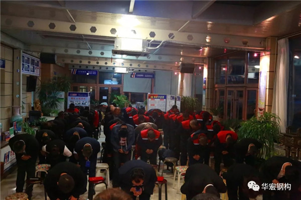 2018年11月3日17时,在公司总部阳光大厅举行了《华宏钢构第三十三届“每月岗位之星”表彰大会》,公司董事长朱宏志、财务总监刘肖、苯板厂厂长赵月江及华宏钢构全体员工参加了大会。