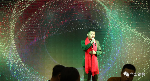 17.董事长朱宏志先生 发表新年贺词,对过去一年里为公司发展付出辛勤劳动的全员、及员工家属、客户、各界领导、合作伙伴进行衷心的感谢。对华宏11年的发展进行高度肯定,对2020年疫情期间华宏的业绩进行高度肯定。并向全员诠释华宏“1277”战略蓝图:围绕一个总目标,全力打造员工幸福、客户信赖、股东共赢的国内寒地装配式钢结构建筑集成服务商。期望我们全体华宏人共同努力,早日实现企业伟大愿景。