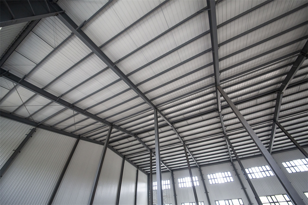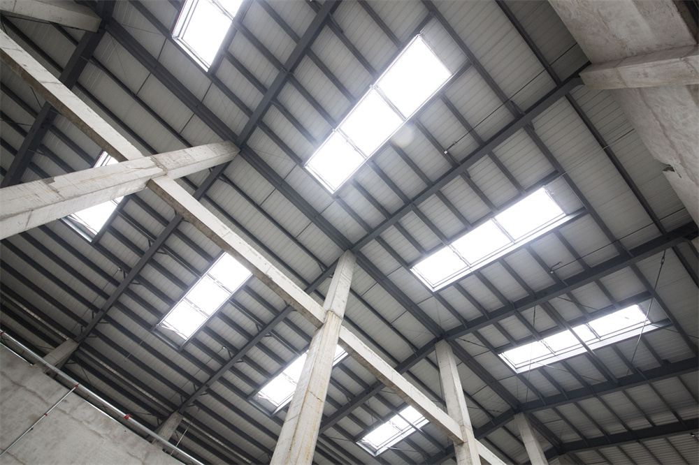 单个工程总建筑面积为:10077㎡,室外设计地面*其口与屋脊的平均高度为13.3米,墙面采用砌体结构,屋面采用轻钢屋架结构,结构为高低跨,不规则形状,加工构件种类多,对安装精度要求高,屋面维护为150厚岩棉复合压型钢板坡屋面,设有多个采光带,屋面单玻长,板重施工难度大,防水要求高。